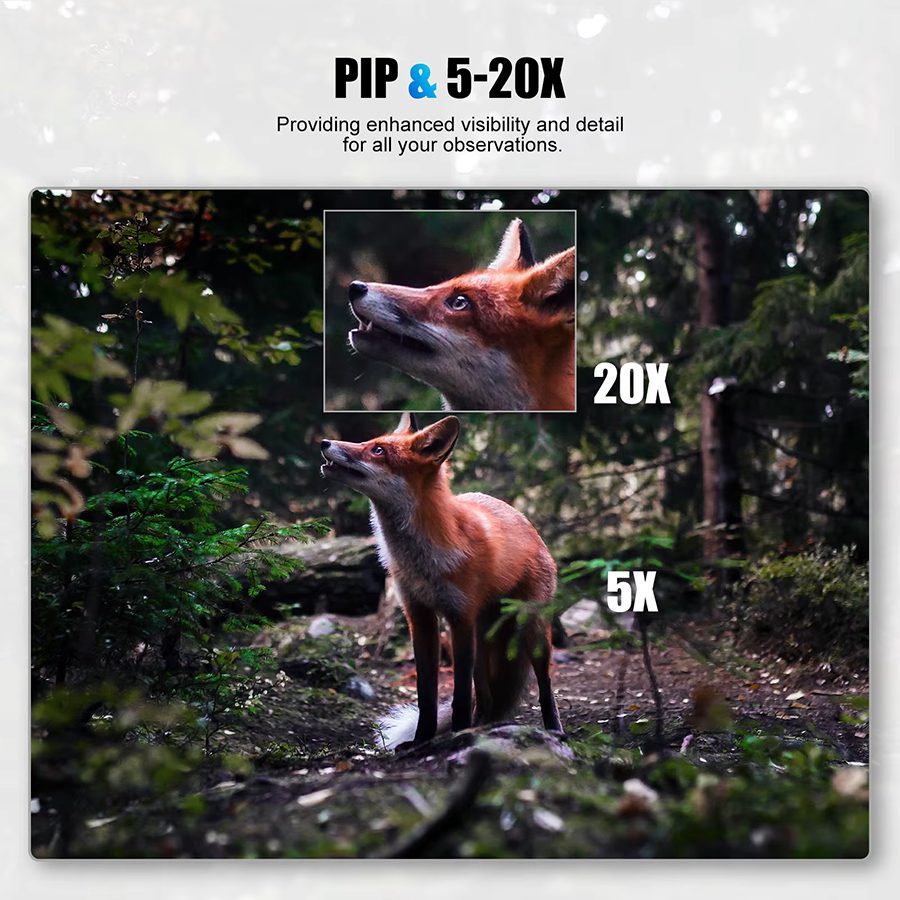 Equipped with a low-light CMOS sensor, this scope captures crisp and clear images in minimal light. With ambient light, it displays vivid color images, significantly enhancing nighttime observation capabilities.