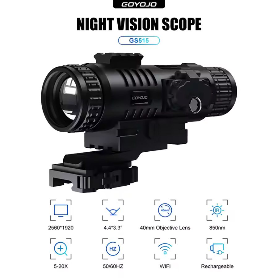 GS515 Night Vision Rifle Scope 5X-20X Zoom HD 1920p Gyroscope One Shot Zeroing