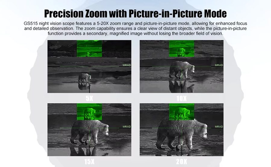 GS515 Night Vision Rifle Scope 5X – 20X Zoom HD 1920p Gyroscope Stabilization One Shot Zeroing