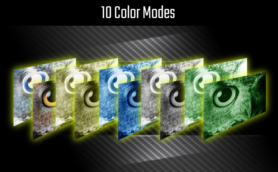 Color modes – 10: Full Color + inverted, Green + inverted, Black & White + inverted, Yellow + inverted, Blue + inverted