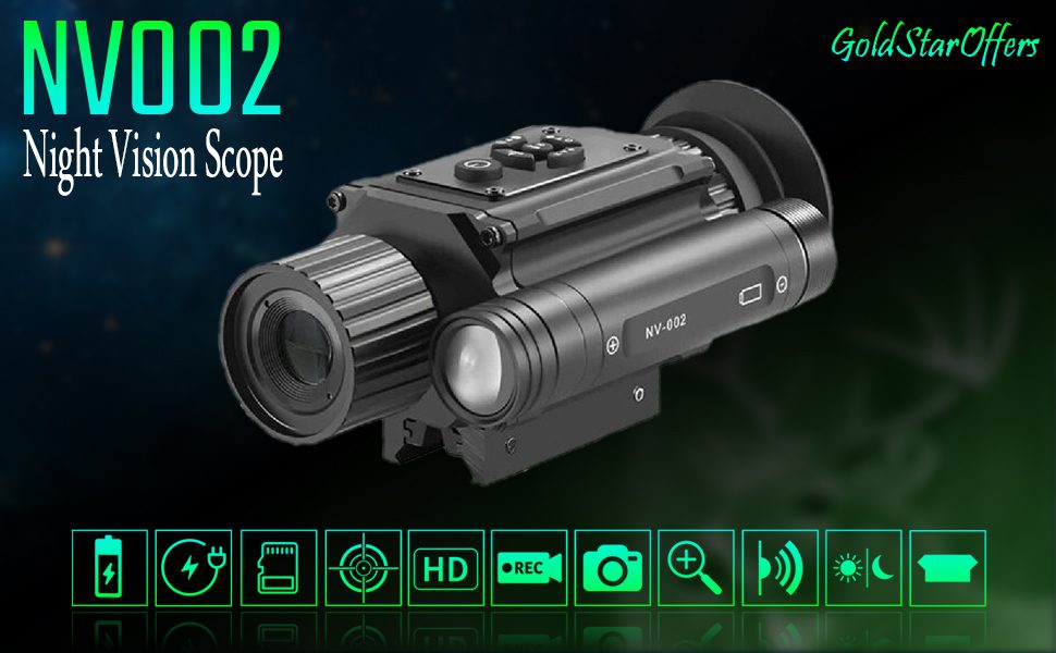 NV002 IR Infrared Night Vision Rifle Scope / Handheld Monocular 1x – 4x Zoom 4x Magnification With Multiple Built-in Crosshair Reticle Options Easy-Zeroing